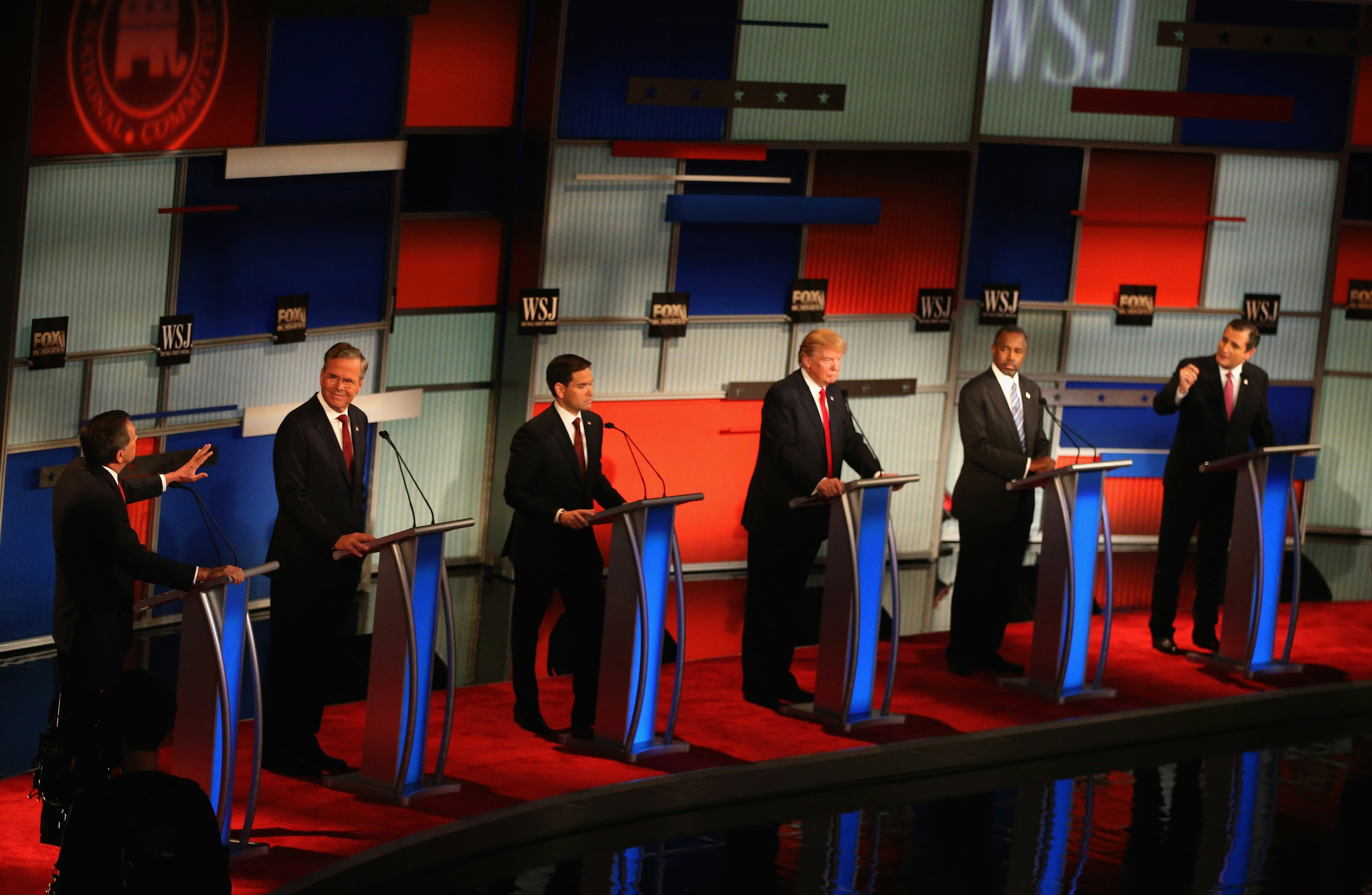 Still, things got really jumbled after Muir and Radditz called New Jersey Gov. Chris Christie to his podium. Former neurosurgeon Ben Carson and businessman Donald Trump completely missed their cues and needed multiple calls to finally come on stage. And the moderators nearly forgot to introduce Ohio Gov. John Kasich.