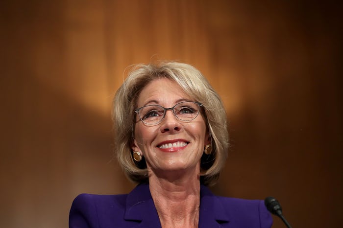 Unfortunately for DeVos, her past donations speak for themselves. Before the confirmation hearings, DeVos (who is a devout Christian) declined to comment as to her stance on LGBTQ rights. And yet, her family has been the primary donors to some seriously anti-LGBTQ organizations — more specifically, upwards of $200 million in total to right-wing, Christian organizations. DeVos and her husband Dick DeVos have also supported the Acton Institute, another Christian conservative group that supports anti-LGBTQ policies. Romper has reached out to Devos' reps within the official transition team for comment on her stances and past donations and is awaiting a response.