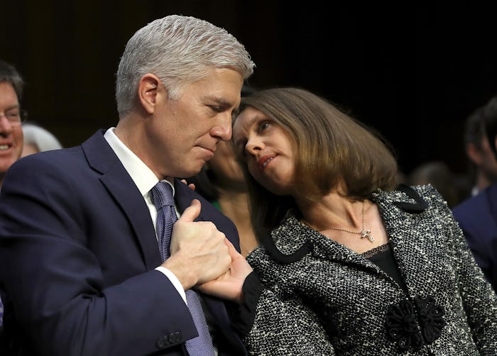 Ever since President Donald Trump announced his Supreme Court nominee to fill the empty seat following Justice Antonin Scalia's death in 2016, all eyes have been on his pick, Neil Gorsuch. The 49-year-old judge is never solo and always seems to have his wife by his side. She stood behind him during his acceptance speech and has been with him at every confirmation hearing so far. That's commitment and takes a lot of time and energy in and of itself — so it's no surprise some might be wondering what Marie Louise Gorsuch’s job is, outside of acting as a strong anchor for her husband, who is facing a lot of scrutiny as a result of his nomination.