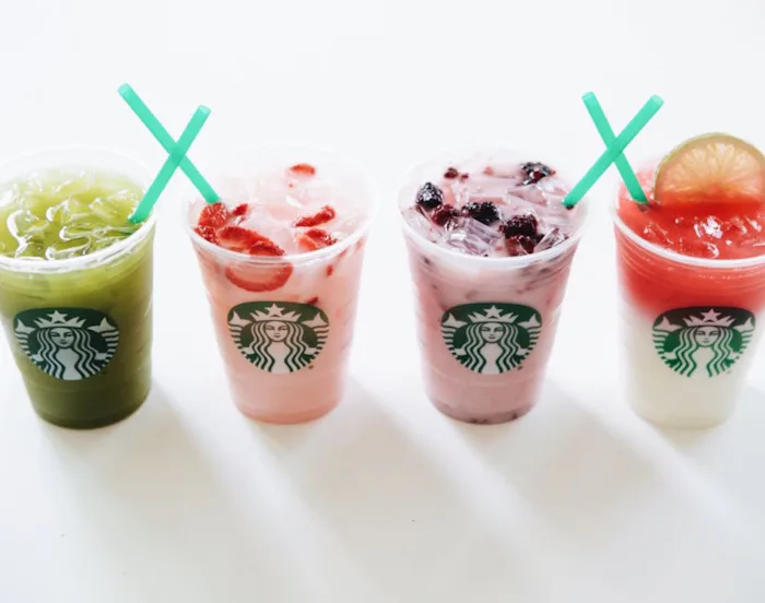 A refreshing beverage that combines light, fruity Cool Lime Starbucks Refreshers Beverage with cool, creamy coconut milk and a splash of Teavana Shaken Iced Passion Tango Tea and a lime wheel, for a bright burst of hibiscus notes.