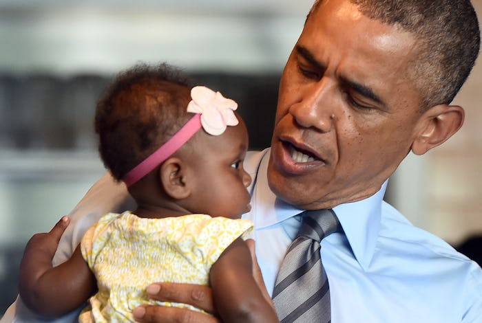 Last year, Ashton Kutcher complained about the problem on Facebook, posting, "There are NEVER diaper changing stations in mens public restrooms. The first public men's room that I go into that has one gets a free shout out on my FB page!" He later started a petition on Change.org to convince retailers to install changing stations in men's rooms (a little misguided, since he singled out two stores that actually already did), but his biggest contribution to the fight was simply calling attention to the issue. Parenting isn't just for women, and it's time everyone accepted that. Although one of our presidential candidates disagrees, thankfully, our current president addressed the issue before leaving office.