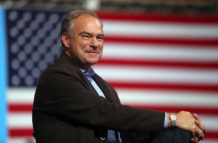 Turns out, the pin is one Kaine wears frequently — and it's in honor of his son, who's serving overseas. Earlier this summer, Kaine wore the pin at a speaking event on the campaign trail and was later ridiculed by the North Carolina Republican Party for the "shameful" act of wearing the "Honduras flag pin on his jacket but no American flag," according to the Huffington Post. But Kaine isn't wearing the pin to support Honduras. In fact, the pin he's wearing is recognized by the Department of Defense for Blue Star Families, and he's wearing it because his son, Nat, is a U.S. Marines in the 2nd Battalion, 8th Marines unit. Nat is currently serving overseas, according to the Huffington Post.