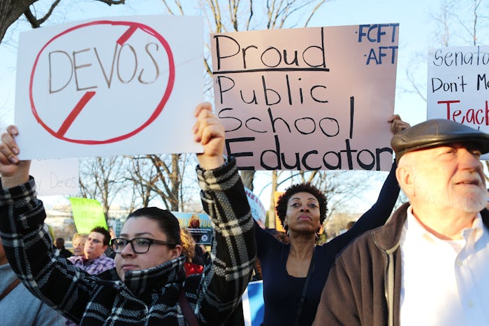 Although it's not entirely clear exactly how DeVos will change education policy as education secretary, her views on private education certainly seem to be a potential threat to public education. And since protecting public education is a big priority to the parents, teachers, and other educators in the country, it's no surprise that there was such a big push to fight back against DeVos' confirmation.