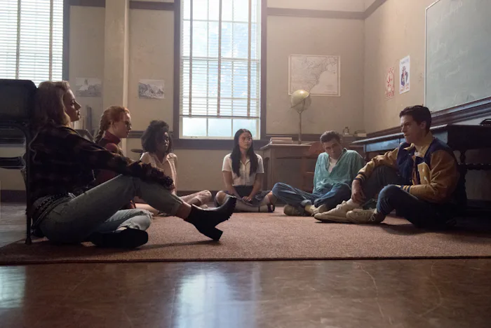 While the exact year hasn’t been disclosed yet, the episode is confirmed to take place in the early ‘90s. In a promotional photo for the episode from the CW, you see teen versions of Alice (Lili Reinhart), Penelope (Madelaine Petsch), Sierra (Ashleigh Murray), and Hermione (Camila Mendes) discussing something in the school’s bathroom. The words “End Apartheid” are scribbled in lipstick on a mirror behind them, signifying that it probably takes place between 1990 and 1994, the final years of the anti-apartheid movement.
