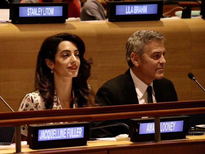 Break out the confetti and glitter again because George and Amal Clooney are expecting twins. The exciting news, which comes just days after Beyoncé glamorously announced that she too was expecting twins, was confirmed on Thursday’s episode of CBS’ The Talk. So, when is Amal Clooney due? Romper has reached out to the couple's reps for comment on the pregnancy news and is awaiting a response.