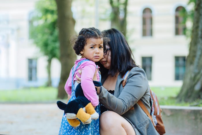 So, while it may be difficult because your heart is racing and you are fighting the urge to body slam that child who pushed your kid off the seesaw, the best thing moms and dads can do is to try and stay calm, and then feel out what level of soothing their child really needs in that moment. Says Klein: "To provide comfort is to size up the situation and respond accordingly. Does my child simply need me to help them up and let them know I am there, or do they need some extra comfort before they can move on? Either way, the response is a supportive one."