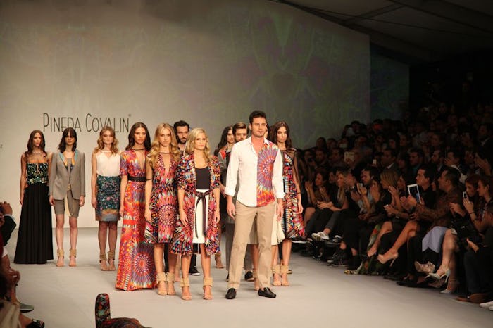 The Bachelor is chock full of magical, over-the-top dates that can make us fall in love simply by viewing, but this season took the perfect date to a whole new level when Ben brought Lauren H. to Mexico City's Fashion Week to model. Yeah, that's something we could totally get behind. (Ben, we see you working that smize on the runway!) If you absolutely fell in love with the vibrant, Latin-inspired designs of Pineda Covalin, you're definitely not alone. But where can you buy Pineda Covalin's designs? Are the duds Ben and Lauren were rocking available in the United States, or are we going to have to find our very own Bachelor to take us to Mexico City?