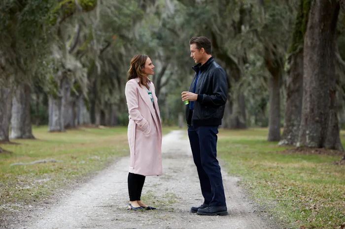 The sprawling greens and flowing trees may have been a clear giveaway that Love Takes Flight is set in the charming city of Savannah, Georgia. Savannah is known for its historic architecture, giant willow and oak trees, coastal parks, and its old country charm. The city is the perfect backdrop for a budding romance, so it’s no surprise Hallmark picked it as the setting for their new film.