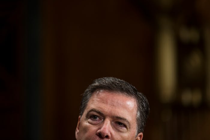 According to the New York Times, Comey said during his testimony that he'd be fine with it if President Donald Trump had been recording their conversations on the phone or in person, as Trump had suggested he'd done in a tweet, because then there'll be record of his account of the situation. The "Lordy, I hope there are tapes" comment was basically Comey saying, "Show me the receipts," and the internet is here for it. The White House did not respond to Romper's request for comment regarding the truth of Comey's statements. The White House also hasn't responded to requests for comment regarding allegations that Trump's "hope" that Comey drop the investigation into Michael Flynn constitutes obstruction of justice. Trump did tweet about Comey's hearing on Friday: