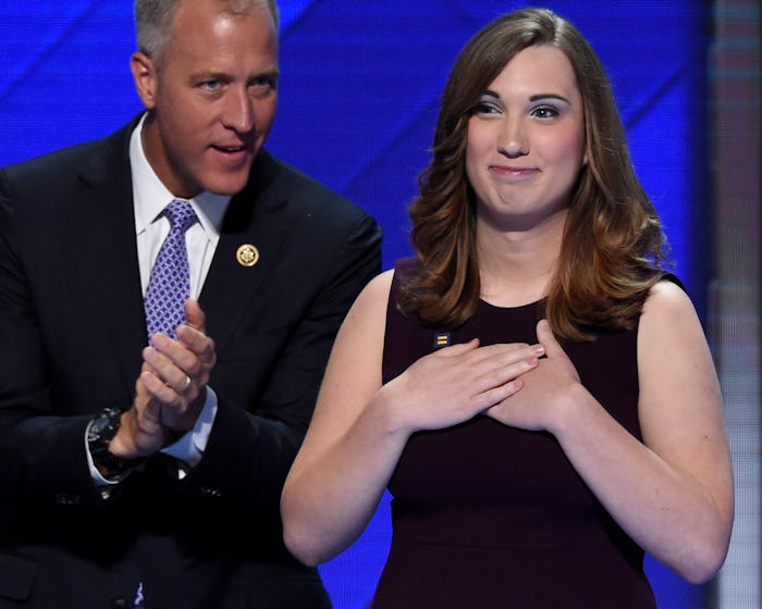 This Democratic National convention is already a historic one, because on Tuesday the Democrats became the first major political party to nominate a woman as its presidential candidate. But women aren't the only on breaking barriers in 2016, so just hours before Hillary Clinton is scheduled to formally accept her nom, McBride, a former Obama White House intern and just 25 years old, took the stage to talk about coming out four years ago, her new husband's death from cancer, safeguarding protections for LGBTQ people, and why she believes Hillary Clinton is the only person in the race up for the job of Commander-in-Chief.