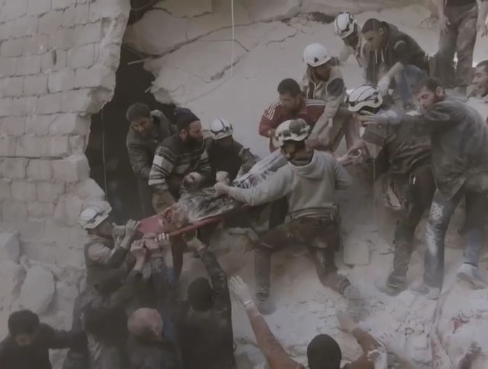 The film centers around footage shot by the White Helmets themselves as they rescue survivors from piles of rubble following airstrikes by the Russian air force and Syrian President Bashar al-Assad’s regime in the rebel-held city of Aleppo, where schools and hospitals are considered fair game. According to Slate, the White Helmets are often the only emergency first responders allowed into the city. The film brings viewers right into the middle of the sometimes-abstract concept of the war, and shows a firsthand account of these brave volunteers who get up every morning, kiss their families goodbye, and then spend the day patiently watching bombs fall and pulling babies out from under decimated apartment buildings. Their courage is unimaginable, even as viewers watch the scenes unfold. But for the White Helmets, none of whom had any rescue training or experience before the war, there's simply no alternative.