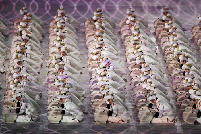 The Olympic opening ceremony was choreographed and directed by Song Seung-whan, best known for his long-running non-verbal musical Nanta. Before the show began it was reported that its theme would be Peace in Motion. People who worked on the production explained that the story would unfold like a magical fairytale, following five children's beautiful winter journey through Korean history and the country's never-ending search for peace. That is quite a theme especially considering the difficult relationship the country has with North Korea, who announced last minute that they would be taking part in the Olympics as well. But in execution, the show was as beautiful as anyone could have hoped, complete with dragons and a light show and dancers and yes, little kids. Also that incredible drum circle which definitely seemed to be made up entirely of women. Ladies, can I join your women only drum circle?