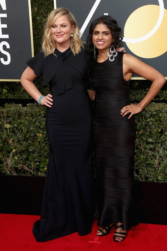 While the Golden Globes is a celebratory occasion, it's also one that involves politics, awareness, and, this year, the #MeToo and #TIMESUP movements. Celebrities, wearing all black in solidarity with the countless women who've experienced sexual assault, sexual harassment, and workplace inequality, also brought game-changing activists from across the country to highlight important movements working to end sexism, inequality, and sexual violence. So, who did Amy Poehler bring to the Golden Globes? Saru Jayaraman is a name every single human being should know, and a fierce advocate for women in the workplace.