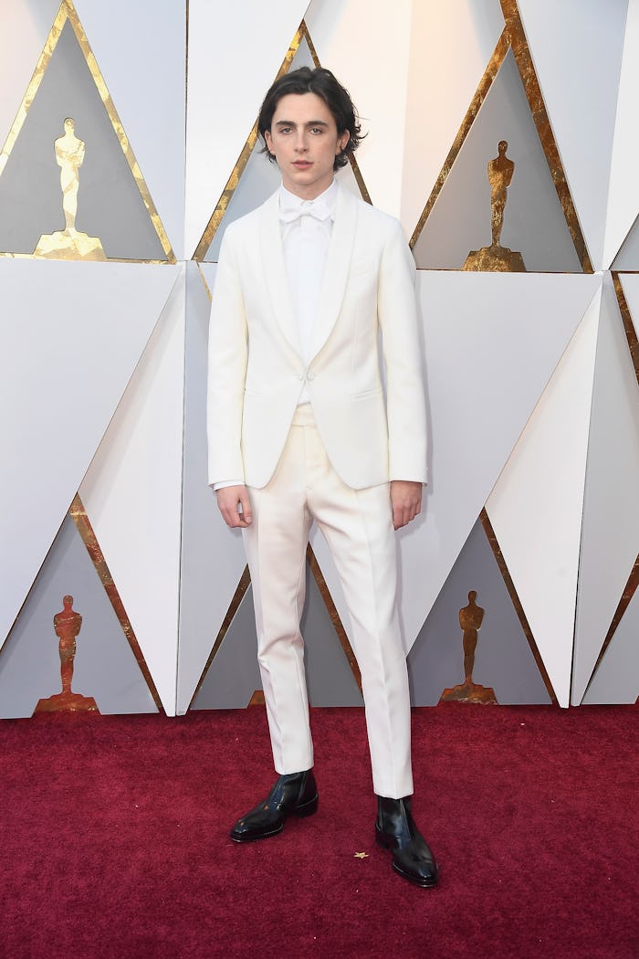 Timothée Chalamet is having about as big a breakout year as one can have this awards show season. He plays feelings-filled adolescent boys in two of this year's biggest Oscar contenders and is nominated in the Best Actor category for his work in Call Me By Your Name. (He also had a role in multi-nominated Lady Bird.) So who did Timothee Chalamet bring to the Oscars with him? Continuing his season-long trend, he brought along his family, appearing with his mom in a red carpet interview with ABC.