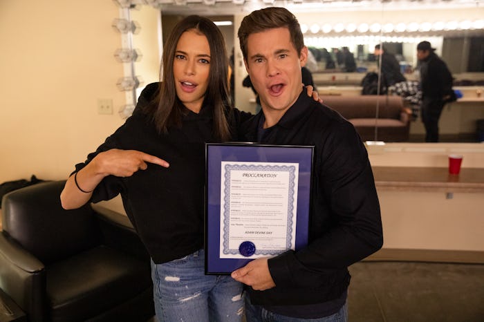 Adam Devine headed back to his hometown of Omaha, Nebraska to film his first ever standup special for Netflix, and among the topics broached by the Pitch Perfect star is the existence of his longtime girlfriend. In a sneak peek of the special released before its debut, Devine jokes that he's finally acknowledging the relationship publicly after four years together, so viewers may be wondering who Adam Devine's girlfriend is. It turns out she's a well-known actress in her own right and the two met filming horror movie The Final Girls. Perhaps best known for playing Sydney on Pretty Little Liars, Chloe Bridges and Devine began quietly dating in 2015, according to Us Weekly.