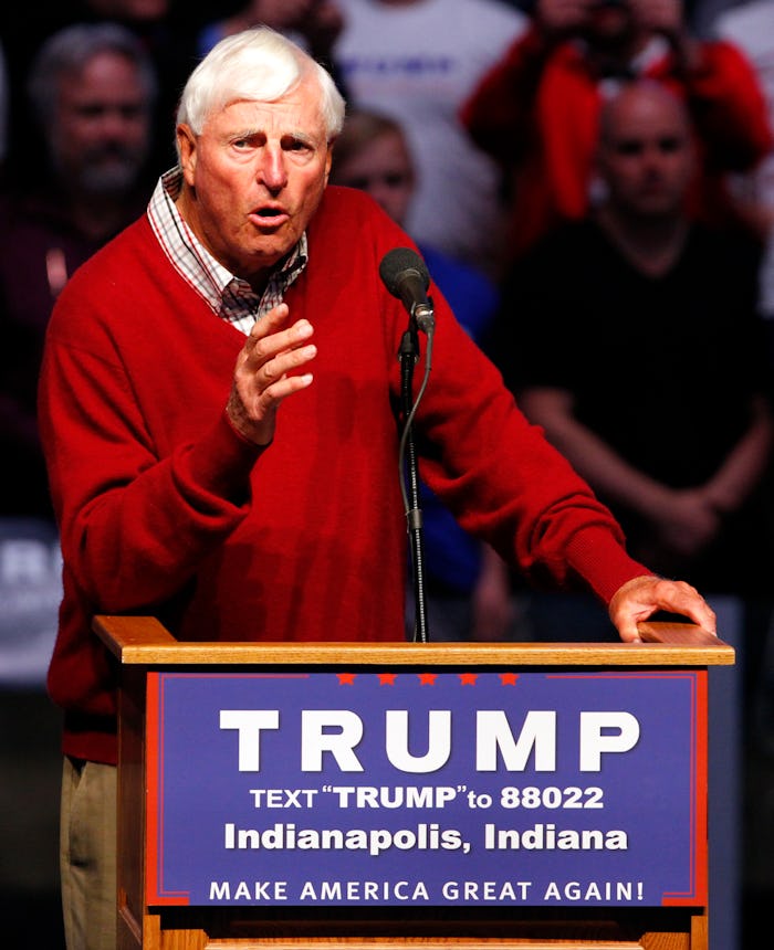 The Republican National Convention is quickly approaching, and barring any major last ditch efforts by his GOP critics, Donald Trump will accept the official nomination for the Republican party. Before Trump accepts the nomination on Thursday, though, the convention — which starts on Monday in Cleveland, Ohio —will feature speeches from celebrities and politicians alike, all in support of Trump. Before people tune in, they might want to familiarize themselves with the convention's speakers — like Bob Knight. That way, come convention time, they're not asking themselves "Who is Bob Knight?" Because everyone needs to know who this fervent Trump supporter is and why his name rings a bell.