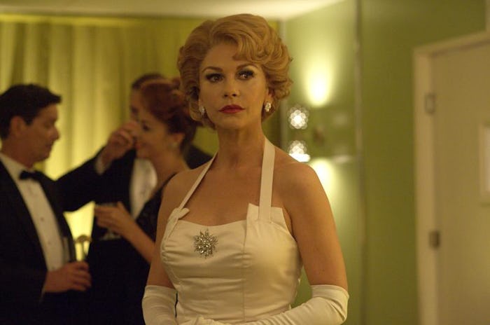 Though the central story in Feud Season 1 revolves around the acrimonious, decades-long rivalry of Bette Davis and Joan Crawford, those two women are by no means the only Hollywood legends featured in the latest anthology series from Ryan Murphy. Olivia de Havilland (played by Catherine Zeta-Jones), Geraldine Page (played by Sarah Paulson), and Joan Blondell (played by Kathy Bates) are a few of those figures. Interestingly enough, de Havilland, in particular, had a personal life as interesting as either Davis or Crawford — especially when it comes to her relationship with her sister. But who is Olivia de Havilland's sister, Joan Fontaine?