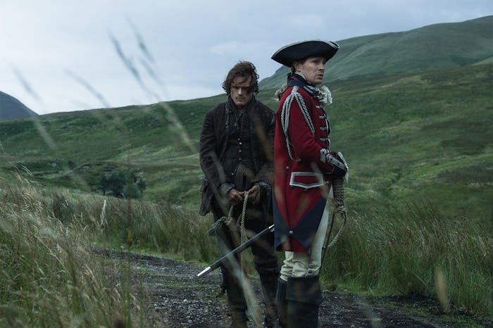 So for a little backstory. If you can remember all the way back in Season 2, Jamie and Claire were leading a faction of Highlander soldiers on their way to the rebellion, which would eventually end in the Battle of Culloden. A very brave and very unwise teenage English soldier, played by Oscar Kennedy, managed to sneak into their camp and attempted to cut Jamie's throat. The gambit obviously failed. But Jamie used the boy to get some vital information about the nearby redcoat encampment with help from Claire, who pretended to be a hostage on the brink of rape, torture, and other unpleasantness. It didn't take long for the boy to spill everything he knew.