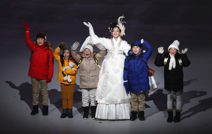 The 2018 PyeongChang Winter Olympics opening ceremony was titled "Peace in Motion" and it was framed around the epic journey of five children from Gangwon. They represented the five Olympic rings and the five elements believed to make up the universe: earth, metal, fire, water, and wood. It was sort of like a really high concept mashup of Stranger Things and The Chronicles of Narnia, with the children traveling on the back of a white tiger — the mascot of these winter games — throughout the creation story of Korea. They traveled from a constellation in the sky to the formation of the Baekdu mountain range to a glittering gate, beyond which lay ~the future~. According to the Washington Post, this was meant to symbolize South Korea's shift from beautiful natural landscape to a global tech powerhouse. A short film featured a glimpse into a high-tech future, symbolizing the promise and innovation to come from today's South Korean children.