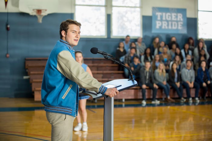 Netflix's 13 Reasons Why may center around the story of Hannah Baker — who ends her life before the start of the show — but there are a lot of characters at play throughout the telling of her story. As Clay Jensen listens to the tapes that contain Hannah's reasons behind her suicide, he learns that many of his classmates, including himself, played a role in her decision. While some people's actions could be considered small, there are a few others who made really bad choices. One of those people is popular jock Bryce. So who plays Bryce on 13 Reasons Why? Justin Prentice tackled the difficult role.