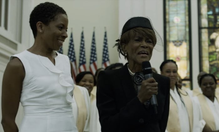 Another day, another House of Cards character we meet whose days are numbered. Even though it's too early on in the show to truly know who that soon-to-be dead character will be, it's not too soon to start hedging our bets, and if I'm being honest, I'm putting big money on the Texas Senator who's unwilling to fork over her seat (and her legacy) to Claire Underwood. But just who is Doris Jones on House of Cards? Cicely Tyson joined the Underwood Family Drama to portray the Texas Congresswoman, and though her character's presence has been under lock and key until this season's release, Jones makes a pretty noticeable splash in Episode 1.