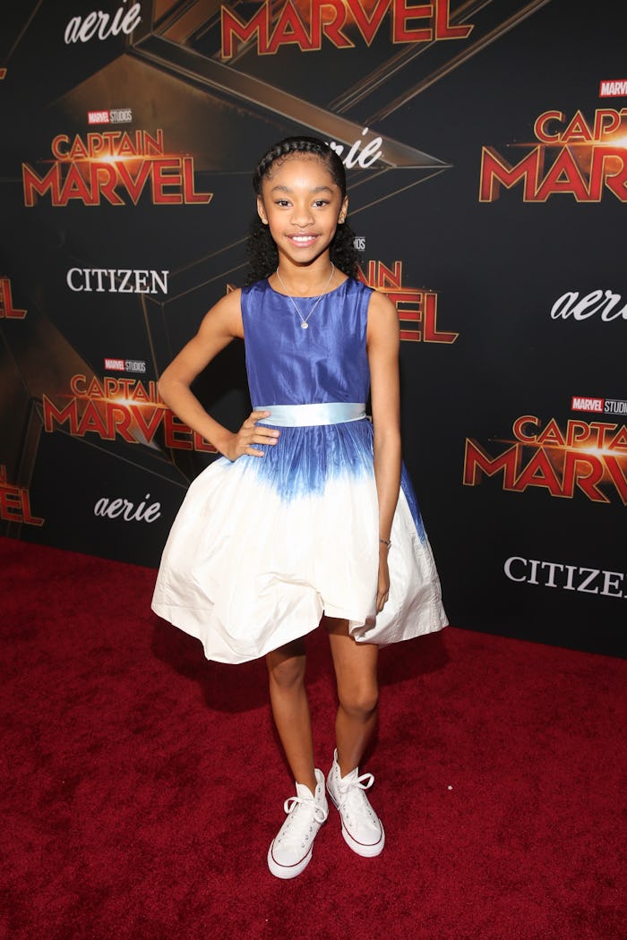 Akbar's role in the film might be small, but it's definitely essential to Captain Marvel as a whole. In the film, Akbar plays Monica Rambeau, the 11-year-old daughter of Maria Lambeau — Carol Danvers' (also known as Captain Marvel) long lost best friend, Air Force Pilot, and single mother (played by Lashana Lynch). Akbar's character, Maria, is the "highlight of the film," according to Essence, as the quick witted, intelligent, confident girl who gets the honor of choosing the colors on Danver's suit as Captain Marvel.