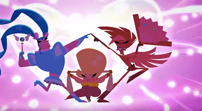 Super Drags premiered on Friday, Nov. 9, just a few months after it was first announced in June aka Pride Month. The series follows three gay co-workers (Ralph, Patrick, Donizete) who "work in a department store with annoying customers and a picky boss," according to Pride. But "at night, they release their inner divas to become Lemon Chiffon, Cran's Sapphire and Crimson Scarlet: three incredibly fabulous Super Drags who have been recruited to gather the LGBT community and spread glitter in the world."