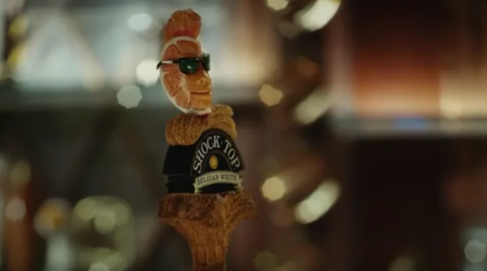 In the ad, Miller sits down at a bar and is quickly handed a glass of Shock Top. But he’s caught off guard when Wedgehead — sitting atop the Shock Top bar tap — not only starts talking to him, but making fun of him. “You look like you’re about to get evicted from your parents’ basement," Wedgehead says, according to YouTube video of the ad. Miller holds his own though — of course he does — shooting back with his own hilarious retorts: “You look like you’re about to get evicted from your parents’ orange crate."