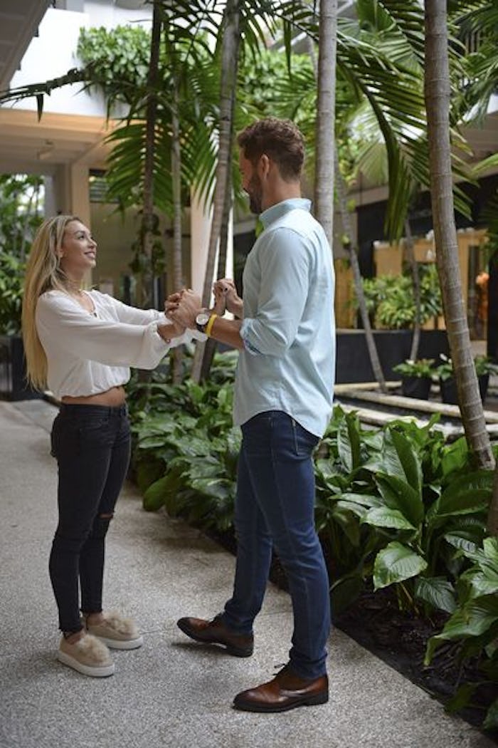 Everything was lined up perfectly for Corinne. She took Nick on a $3,000 shopping spree for sweatpants, he ate some authentic Greek olives like a champ, and then he even got her father's permission for a proposal. So why did Nick eliminate Corinne on The Bachelor then? Apparently receiving her father's blessing and getting treated to a clothes makeover wasn't enough to sway Nick on the idea of keeping Corinne on The Bachelor long enough for the final two, or even the impending fantasy suite dates. Some fans have been predicting this moment since Day 1, ever since she was given the not-so-coveted title of "villain" early on. But Nick was obviously serious about Corinne on The Bachelor to keep her around for so long. Just not serious enough.