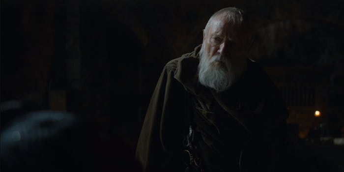 On his way to Cersei and Loras' trial, Grand Maester Pycelle is stopped by one of Varys' little birds. The child whispers something to him, and he reroutes down to Qyburn's creepy lab. Apparently, he believes that Tommen has been stashed down there for safe keeping and that Cersei sent the child to tell Pycelle to go fetch him. Once Pycelle gets to the chamber, however, he realizes that Tommen isn't there, and something is about to go wrong. He tries to talk his way out, but Qyburn traps him. A whole flock of little birds appear out of the woodwork, all with knives. They descend upon Pycelle and stab him many, many, many times.