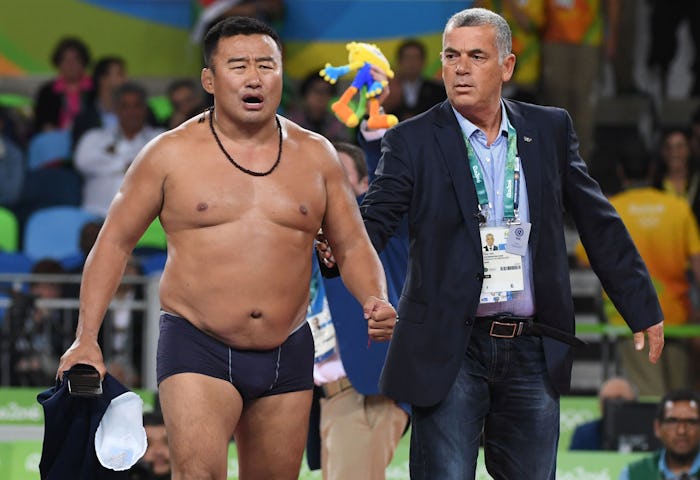 In a surprising, slightly bizarre turn of events, the Mongolian wrestling coaches stripped out of their clothes after the men's freestyle 65-kilogram division third place competition on Sunday in Rio. Mandakhnaran Ganzorig of Mongolia was competing against Uzbekistan's Ikhtiyor Navruzov for the bronze medal in the summer Olympics. It seemed like Ganzorig had won the match, however, referees awarded a penalty point to Navruzov at the last minute leading to a bronze medal victory for Uzbekistan. The Mongolian coaches then stripped off their clothes in protest of the official's decision.