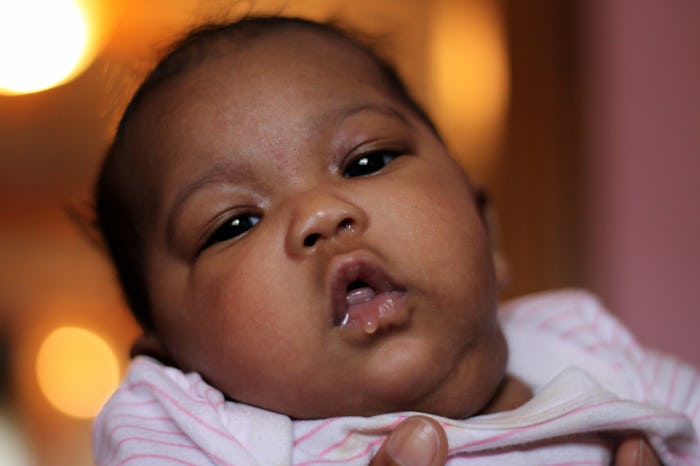 Although your baby’s had salivary glands since utero, you may not notice the heavy duty drool until she’s around two months old. This just means that her salivary glands are starting to works and does not necessarily indicate teething, according to Benioff Children’s Hospital. Because your baby hasn’t yet mastered the art of swallowing saliva and she doesn’t have teeth to help hold it in her mouth, it just spills out on her bib, the couch, and, of course, you.