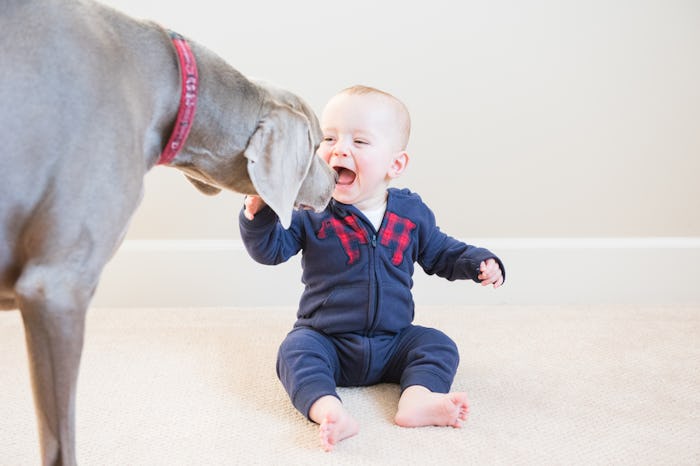 Another reason lots of pups are into babies? Because — newsflash — dogs crave attention. And guess who else are total attention fiends? Freakin' babies. So in many regards, a hound and a baby are a match made in heaven. Which may also be why a dog is more willing to put up with annoying behavior from a wee one. Ever see a toddler grab a fistful of a dog’s fur, and the dog just sit there like the world’s most patient playmate, like some Supernanny on Xanax? While it's cute to see, Semel says it's not really cool, and she personally wouldn’t allow it. “Very rarely does a dog actually love to be poked and prodded. However some dogs just don't mind it from their humans.”
