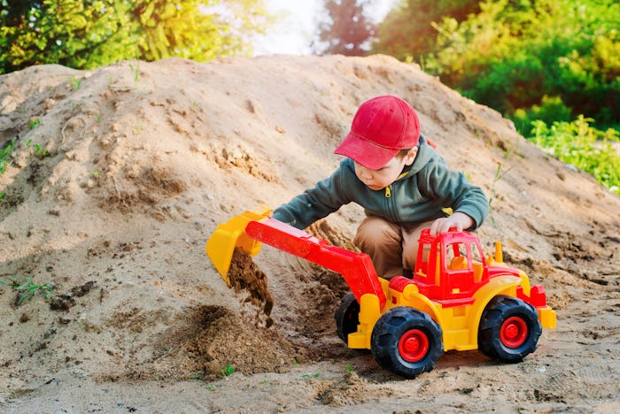 Clinical psychologist, teacher, mom, and author Dr. Carla Marie Manly tells Romper in an email interview that kids love heavy equipment for a variety of reasons, but the highlights include the fact that they’re loud, they love giant-sized things, and they love that they can hold and “own” mini-sized versions of these larger-than-life objects.