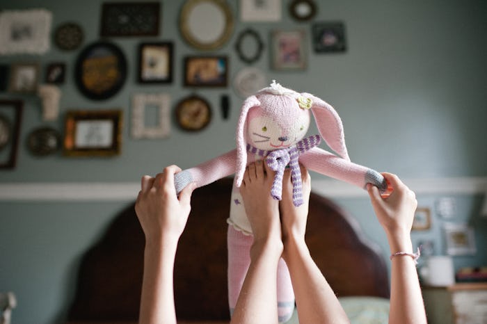 Psychotherapist and children’s book author Beth Tyson tells Romper that kids love stuffed animals so much because they offer a sense of safety, predictability, and comfort in an often uncertain and frightening world. “Take a trip to any toy store with a young child, and you will most likely see them go straight for the pile of stuffed animals. My daughter, who is 4, will typically grab one and tote it around the store while looking at other toys,” Tyson says. “Just like adults, babies and children experience anxiety, and when they do, they look for people or objects that will provide support. Holding on tight to a soft cuddly object can soothe a child’s fears, especially when separated from a parent or caregiver.”