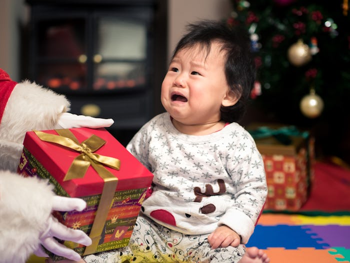 It's true: Under any other circumstances, you'd actually want your baby to sound the alarm if they were unceremoniously handed off to a guy in a fire engine-colored suit with a weird hat. They've only been on the planet for a period of months — how are they supposed to know this isn't a dangerous situation? But even as kids get older and become acquainted with the concept of Santa Claus, don't expect their anxiety to automatically diminish. On the contrary, as they begin to wrap their heads around who this Santa dude really is, they might get even more worked up.