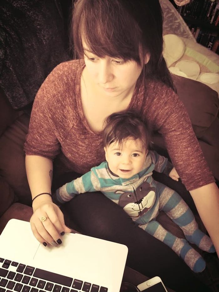 The grocery store clerk keeps looking at me, in between swiping baby wipes and diapers and the indulgent candy bar. With each beep I can feel her eyes on my stained yoga pants, then faded sweatshirt, then makeup-free face; the bags under my eyes as telling as my labored posture. My son is on my hip, leaning on my shoulder as he does when he’s around strangers, burying his face into my neck when asked to wave or say hi or smile. “He’s adorable,” she says. I smile and say thank you, digging through my wallet to complete my transaction and make my way to the car.