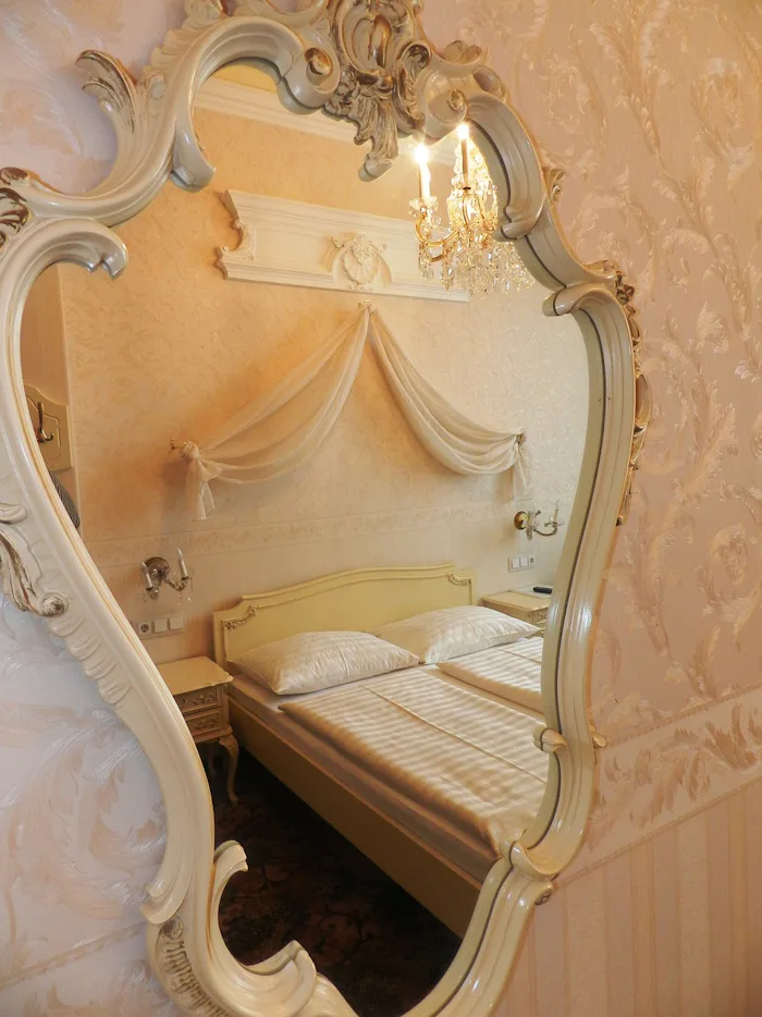 It's based in the history of mirror making and dates back to Francis I, who, while the ruler of Mantua from 1382-1407, installed the first looking glasses throughout his Castle of San Giorgio. But "looking glass" is more than just a designation of the materials the mirror is made from. It's also a concept in human psychology that could potentially have been influenced by the use of the term in Through the Looking Glass.