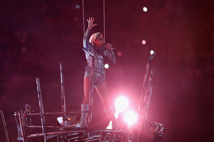 Tonight, the greatest display of talent, coordination, and skill was presented to us free of charge on our televisions. Sure, you may have had to watch some men in helmets run around a green field for a while to get there, but eventually, we were all blessed with Lady Gaga's halftime performance at this year's Super Bowl. And while there were about a thousand moments from her set that were powerful in their own way, there was something about her choice to sing "Born This Way," for a longer amount of time than some of her other songs that mattered. And in the midst of our new administration, it's truly important that Lady Gaga sang "Born This Way" at Super Bowl 51.