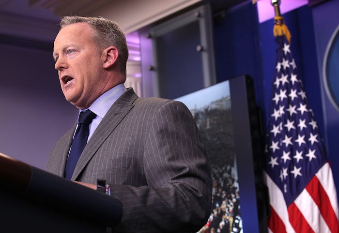 Spicer's main point of contention with the media this time around revolved around the issue that has, apparently, burrowed itself into the Trump's fragile ego: the size of the audience that trekked to the National Mall for Friday's swearing-in ceremony. In response to the media reports that President Obama's 2009 inauguration dwarfed Trump's in turnout, Spicer spouted undeniably inaccurate stats about public transportation ridership in D.C. public public transportation ridership in an attempt to claim otherwise (hint: waaay more people utilized the capital's metro system on the day of Obama's first inauguration). He also asserted that white panels used to protect the grass "highlighted where people weren’t standing." That's just... well, decide for yourself: