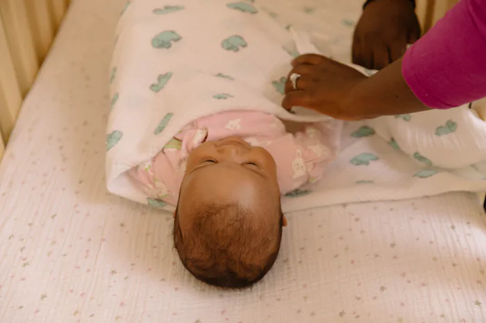 Because infants can't regulate their temperatures as well as we do, heat is a real threat. So keep the temperature in your bedroom mild, and swaddle your infant in a light material. Remember to also keep an eye out for redness, flushing, and fussiness, and you'll swaddle safely all summer.