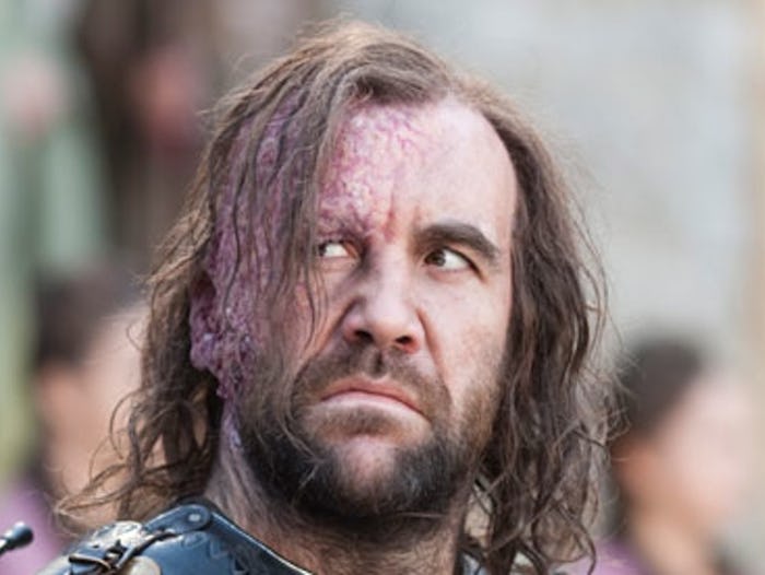 From the moment he saved Sansa from being raped in King's Landing, The Hound, né Sandor Clegane, was someone to think of as more than just another muscle for the king, unlike his brother, Gregor "The Mountain" Clegane, who is literally all muscle for the Lannisters and pretty much no brain. Unless you count the one inside of his head that barely functions after being brought back to life. And no, I don't count that one. But it would make sense that we should get to see a battle between these two brothers who are enemies really, since Gregor is the one who, as a child, mutilated Sandor with fire. Remember when Sandor was telling Arya all about his fear of fire and how his awesome brother is the cause of the trauma? Yeah, I didn't think I would ever get choked up while feeling sorry for the Hound, either. Basically, he just has a soft spot for Stark girls.