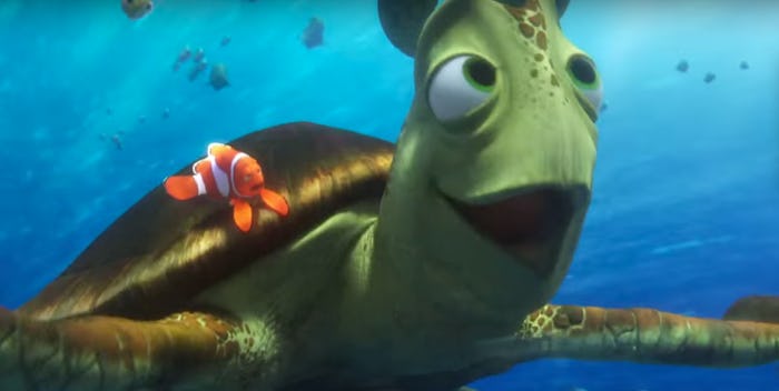 Audiences got their first glimpse of the righteous duo in the trailer for Finding Dory. The sea turtles are only in it for about five seconds, but it's enough of a teaser to get any fan psyched for the sequel. In May, Pixar released a longer clip of Crush and Squirt on YouTube, according to Polygon. In the scene, Crush gives Marlin a lift again: this time using the California Current. While Dory and Nemo explain their quest to find Dory's parents to the littlest sea turtles on the trip, Marlin concentrates on trying not to get sick. "By the way, crossing the ocean is the kind of thing you should only do once," yells Marlin. "One time!" But as in the first movie, the clownfish's safety net is shredded by a turtle whose vocabulary seems to consist primarily of the word "dude."