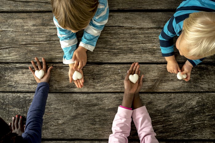 Valentine’s Day is coming up, and no matter how you feel about it, there’s a good chance your kids will want to participate. Between school activities and cartoon holiday specials, little ones usually know what’s up when V-Day rolls around. But is it possible to celebrate Feb. 14 if you’re inclusive and believe in gender equality, but still a sucker for romantic comedies and roses? The short answer? Yes. There are ways to have a feminist Valentine’s Day with kids that won't fill Cupid's Special Day with unnecessary gender norms and patriarchal messages. Trust me.