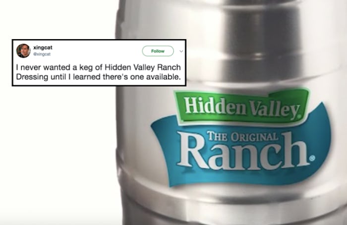 But perhaps the best item among these is the keg of ranch that you can purchase for a cool cost of $50. This isn't your average fraternity party keg you encountered during your freshman year of college. Nope, this keg measuring 9.7 inches is full of the dreamiest dressing around, with a supply that can last an entire year (or like, three months, if we're being honest). Needless to say, people are freaking out on Twitter for a very good reason — people really love ranch.