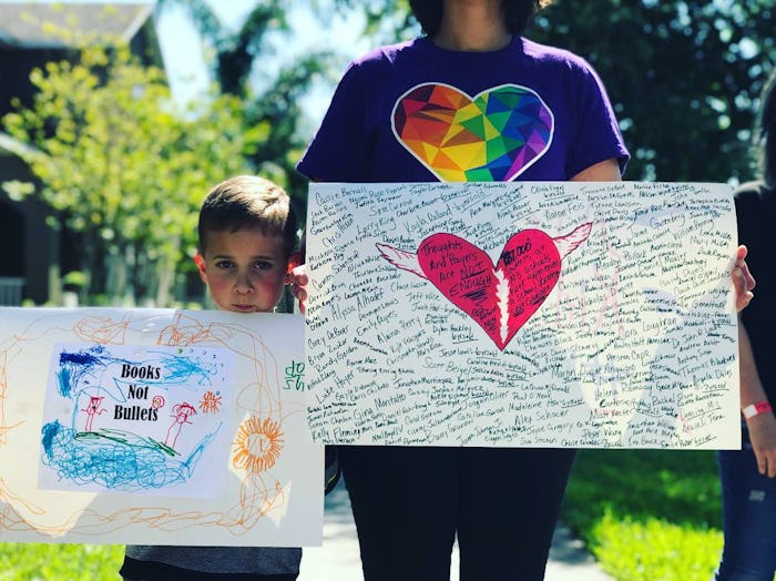 Transportation aside, there's another thing I didn't anticipate: childcare. I planned to bring my children with me — my kids, no strangers to political commentary, sat alongside and created protest posters of their own while I spoke of the historical importance of the event. They beamed with a sort of dutiful pride, but at the time, I didn't take into account the reality of what it might mean to them. The morning of, I sensed their wariness as I rushed to scribble the remainder of victim names on my poster, and rightfully so because they're kids. The moment I looked into their eyes as we circled for a parking spot, the irony of my right to protest became clear: I was asking them to sacrifice something in exchange for this very adult event.