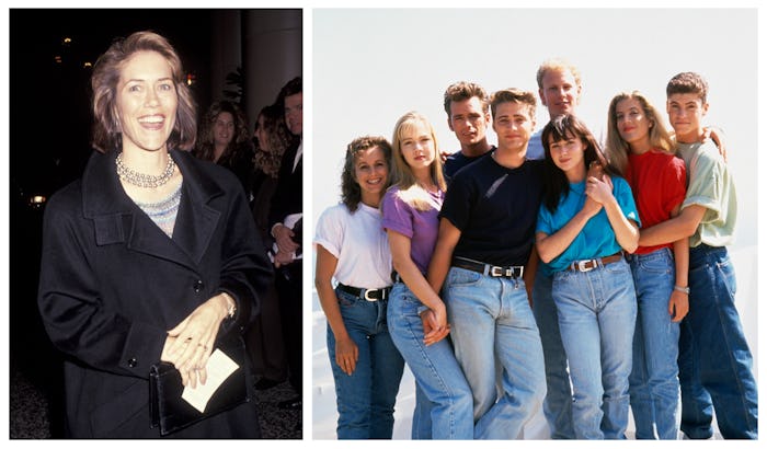 When that ludicrous saxophone intro music first hit screens in 1990, 90210 was a show about the excitement of leaving boring Minneapolis, Minnesota, for Beverly Hills, California, and putting your adolescence on speed. The stars of this tale were twins Brenda (Shannon Doherty) and Brandon (Jason Priestley), uprooted so their dad could do more, bigger work in his suspenders, and steered gently through each week’s minefields (Kelly’s mom doing cocaine at the mother-daughter fashion show, Brenda almost sleeping with a 25-year-old guy in his platform bed, Dylan (Luke Perry) being sexual napalm) by their power-walking mom in her Minnesota Vikings tee. Cindy was the moral heart of the show, but often relegated to the supporting parent. "I noticed that when [the Walshes] had family discussions, I didn’t really participate much, Jim would be the spokesperson for the family," Carol Potter, the actress behind Cindy, tells Romper by phone.