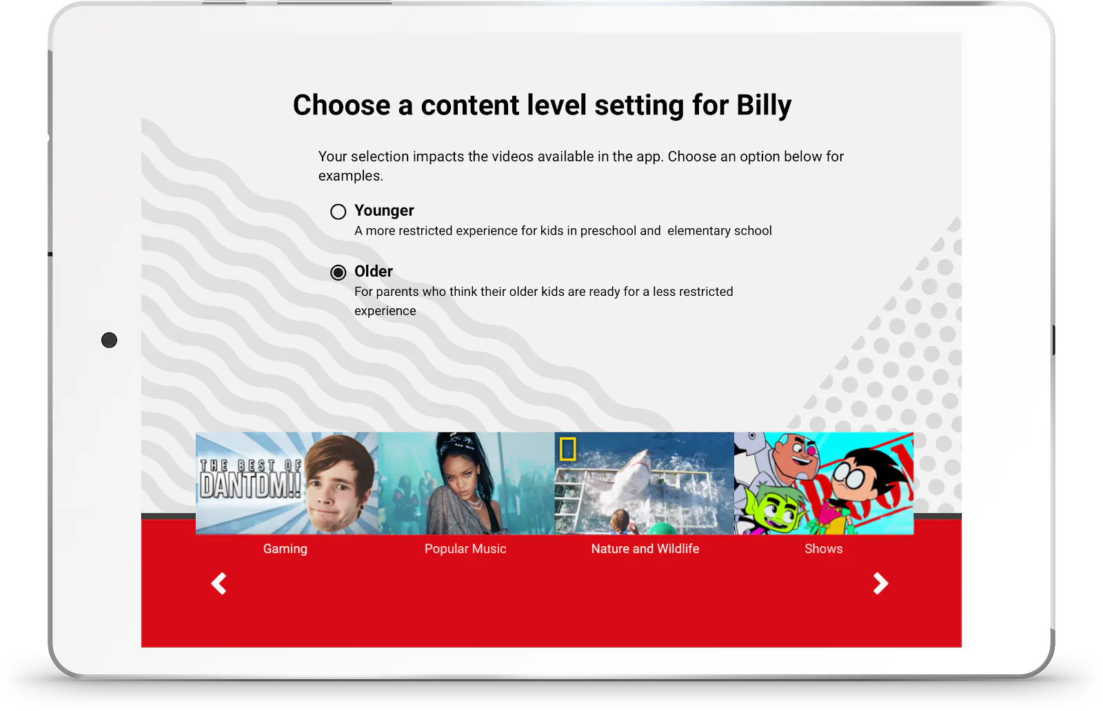 Another change parents can take advantage of, according to Parents, is a new user experience designed for kids ages 8 to 12. When/if caregivers decide the content is appropriate for their older kiddo, they can then opt to select "Older" in the account's settings. (By default, though, the "Younger" version is the one that'll be selected.) So take it or leave, it's now there as an option for you.