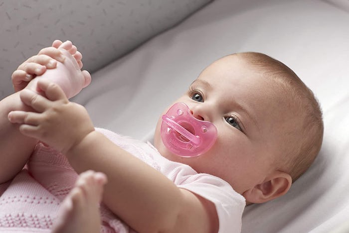Amazon reviewers indicate that their babies love this brand of paci; they give this pick an impressive 4.7-star overall rating and more than 11,700 reviews. This three-pack of pacifiers comes in two colors — pink or blue. If you'd prefer, it's also available in a two-pack.