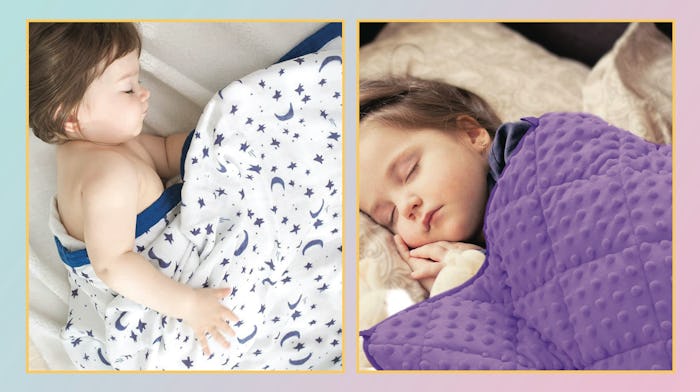 More specialized blankets can also come in handy. Weighted blankets have been found to benefit toddlers by helping them calm down at bedtime. Dr. Jacqueline Jones, M.D., author of the book Medical Parenting: How to Navigate the Health, Wellness & Medical System With Your Child, told Romper in a previous interview that weighted blankets are generally intended for children who are "old enough to be able to remove the blanket themselves — so between 18-24 months of age." Nonetheless, she also cautioned that you should consult your child’s physician before using a weighted blanket. If you decide a weighted blanket is right for your child, it's generally recommended to choose one that’s about 10% of their body weight plus 1 to 2 pounds.